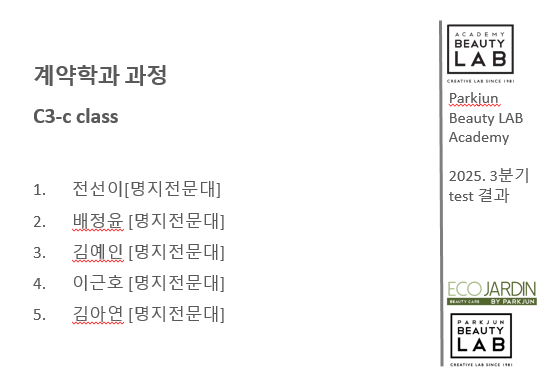 beauty LAB academy 계약학과 과정 3분기 test 결과 공지