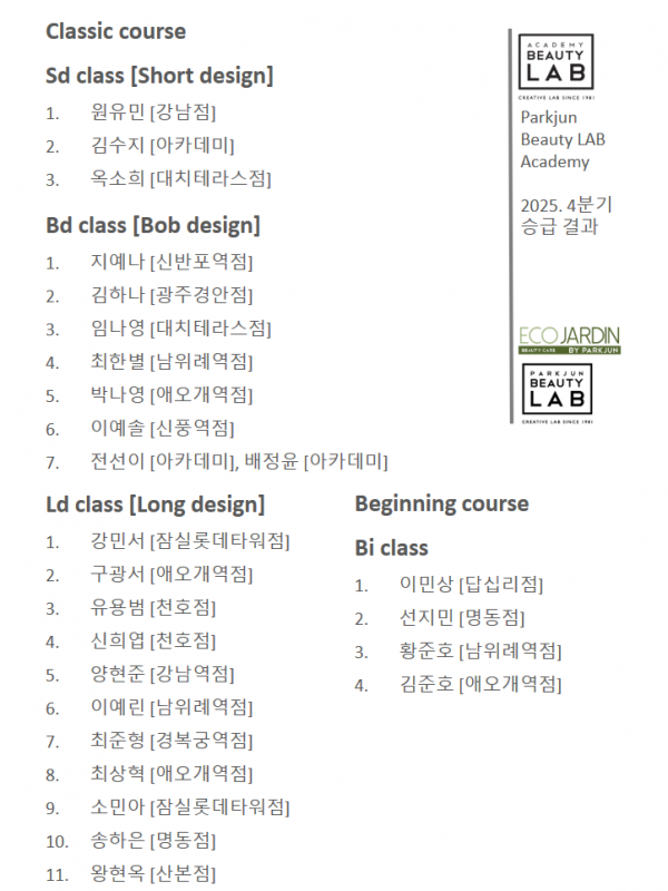 beauty LAB academy 정규과정 4분기 test 결과 공지