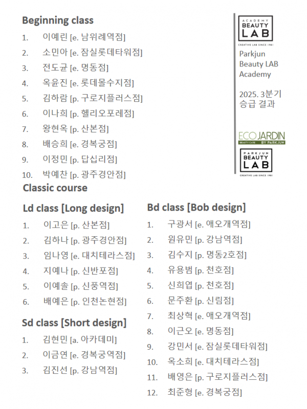 beauty LAB academy 정규과정 3분기 test 결과 공지