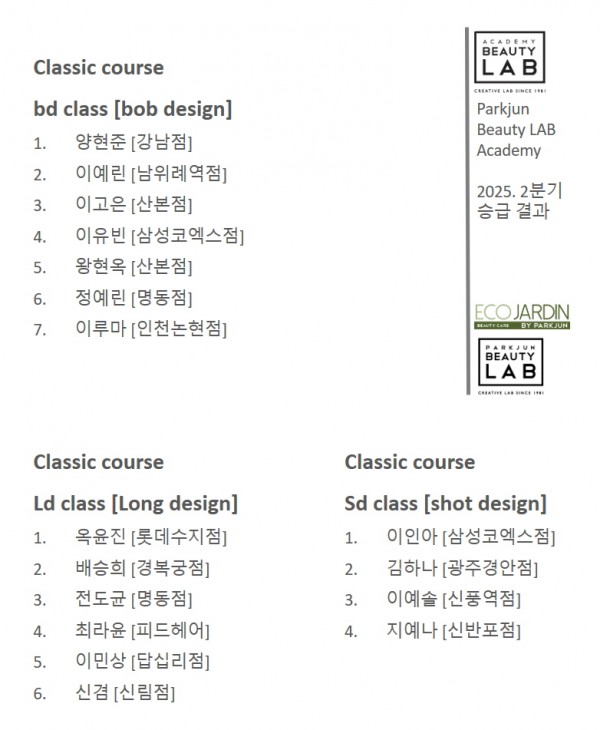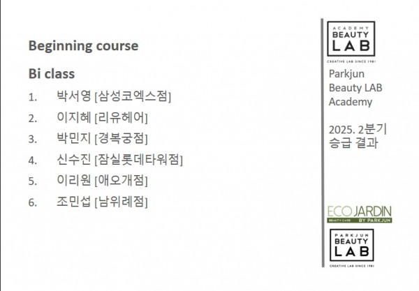 beauty LAB academy 정규 과정 1분기 test 결과 공지